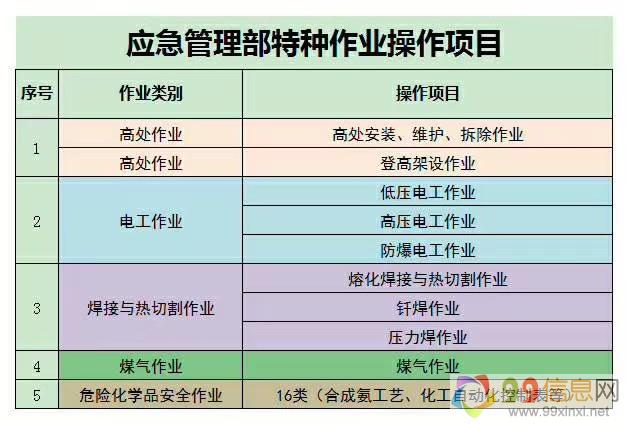 低压电工作业、高压电工作业、金属焊接与切割作业、高处作业、制冷工作业、施工吊装作业、施工挖装作业、危化物品作业、安全合格证(高危行业)、安全合格证(非高危行业)、安全培训合格证、危化从业人员上岗证、职安培训、班组长等www.99xinxi.net。